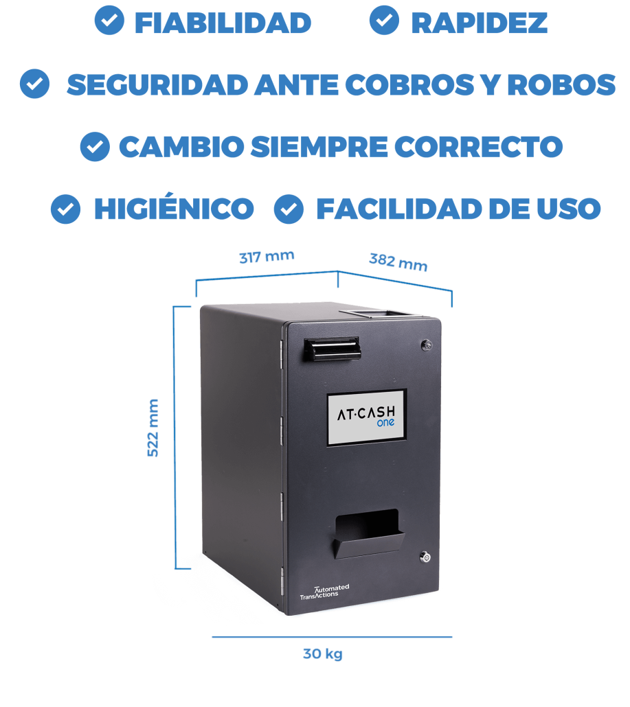 “El cajón de cobro de AT-CASH ONE puede devolver de cualquier tipo de billete y todo tipo de monedas, SUPER CONFIGURABLE!.”